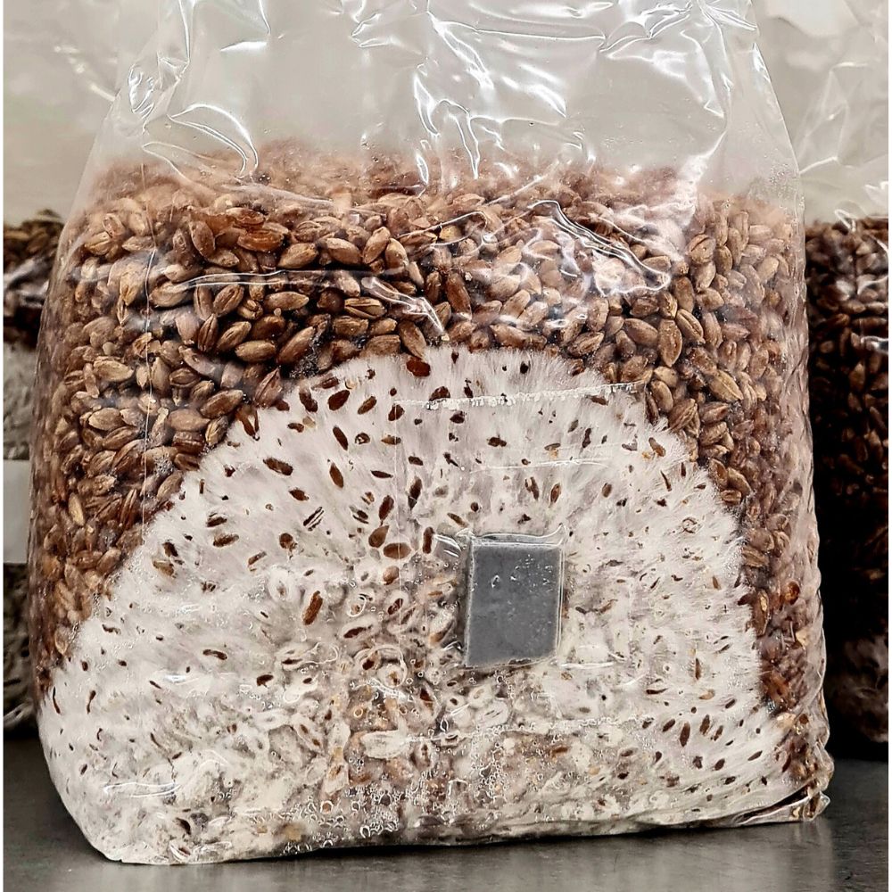 The product comes impulse sealed in sterile, 3T 0.2 micron autoclave spawn bag with filter patch and may be stored at room temperature for up to 2 weeks. If more time is needed, it can be put in a freezer until later use.
